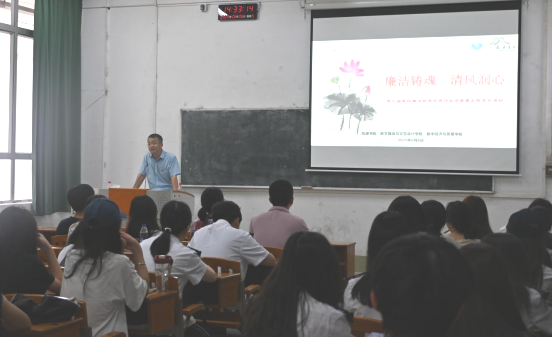 6月6日,数字媒体与交互设计学院、太阳成集团tyc122cc在琶洲校区凤浦书院西教102教室联合举办“廉洁铸魂 清风润心”第九届高校廉洁教育优秀作品观摩暨主题党日活动。本次活动以“青年+清廉”为主题主线,设置优秀作品展示、设计创意讲解及廉洁承诺签名三个环节,开放西教102课室、凤浦活动室两处观摩区域,吸引设计学院、经贸学院50余名大一、大二入党积极分子参与。
