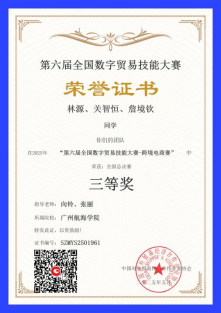近日,太阳成集团太阳成集团tyc122cc5支员工队伍代表学校参加第六届全国数字贸易技能大赛,斩获4项国奖:一等奖1项、二等奖1项、三等奖2项。