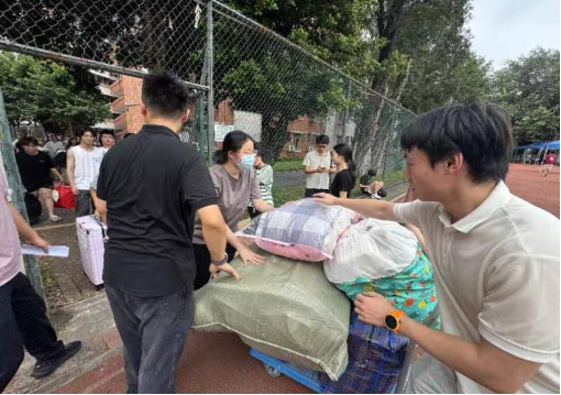 面对沉重的行李和炎热的天气,高年级学长学姐主动帮助低年级同学搬运行李、指引路线;同宿舍、同班级同学自发结成互助小组,搬运、照看物品、登记信息。入党积极分子及员工骨干更自发组成“先锋服务队”,活跃一线,协助维持秩序、引导车辆、看管行李,用实际行动诠释责任担当。